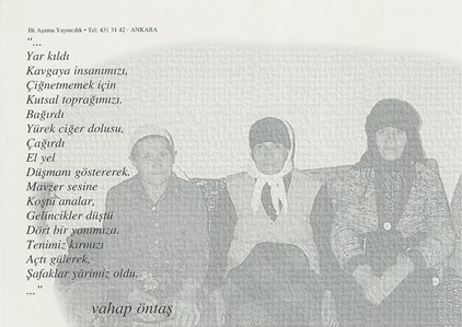 “ /// Tel örgülere sığınmışım, kanamışım /// Tel tel, lime lime dökülmüş etlerim //
